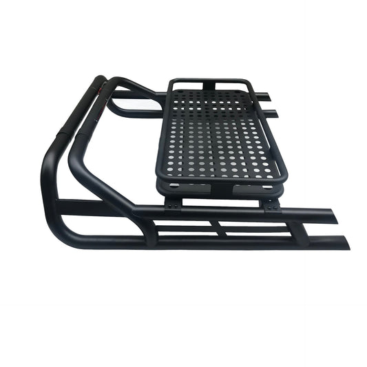 Black Long Arm Roll Sports Bar with Cargo Basket Rack for Mitsubishi L200 96-05