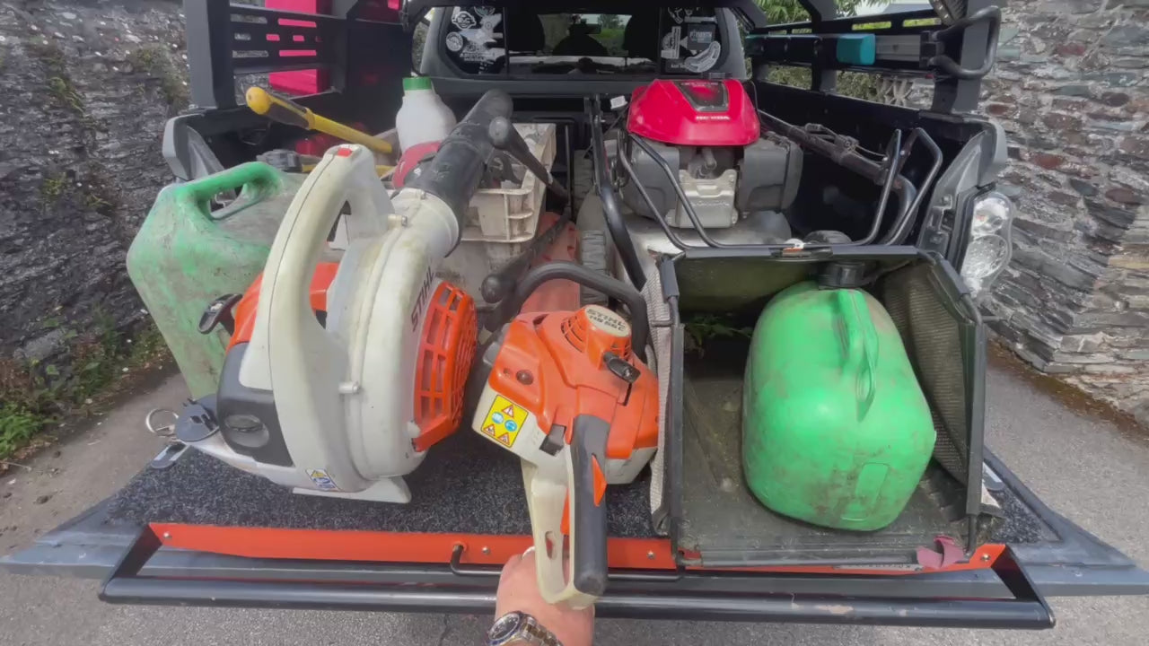- Can be used for convenient cargo loading and unloading, a slide-out tool base or as a mobile worktop.